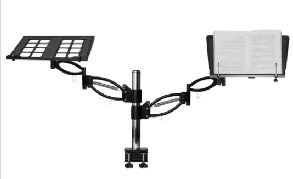 Suporte para notebook desenvolvido para atender a ampla necessidade de movimentação tanto na regulagem de altura como no ajuste do braço na posição horizontal. Este modelo é fabricado totalmente com tubo e chapa de aço carbono com pintura epóxi e tem braço com giro triplo de 360°.