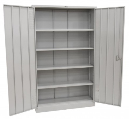 PORTAS COM REFORÇO EM ÔMEGA E ESTAMPO PERFURADO PARA VENTILAÇÃO.