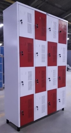 ROUPEIRO SOBREPOSTO DE AÇO COM DEZESSEIS PORTAS MEDINDO 1900X1250X420 mm (ALT X LARG X PROF). OBS. ALTURA COM OS PÉS.